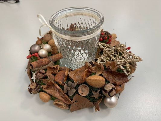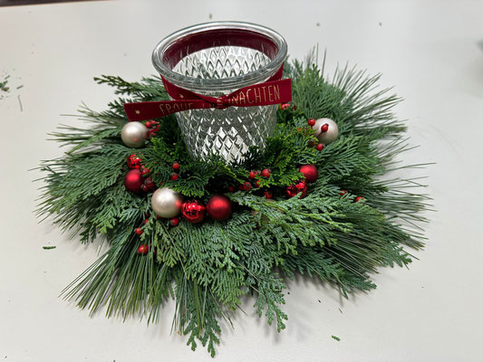 Im Preis enthalten sind verschiedenes Grünzeug, Kleinmaterial, Kerze und Dekoartikel.